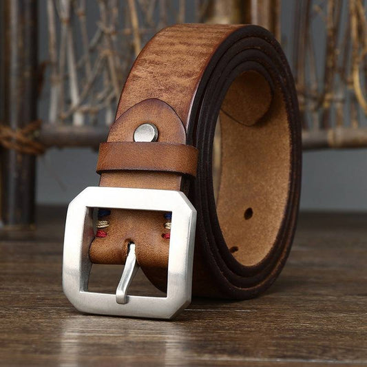 Extra Thick Leather Stainless Steel Buckle Tough Guy Belt