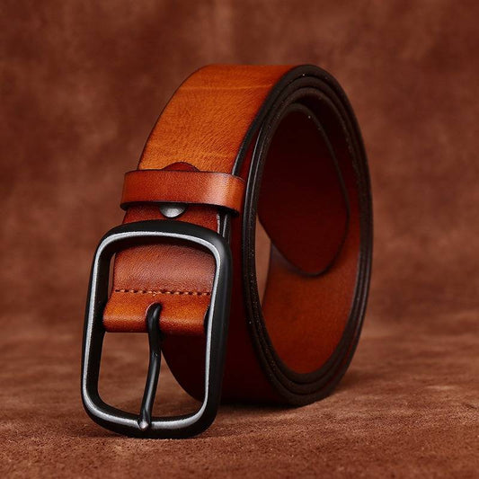Stainless Steel Buckle Handcrafted Extra Thick Leather Men's Belt