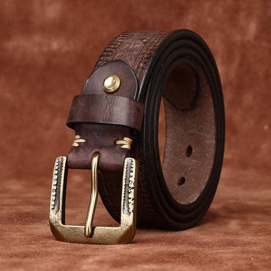 Vintage Double Stitching Embossed Matte Leather Men's Belt