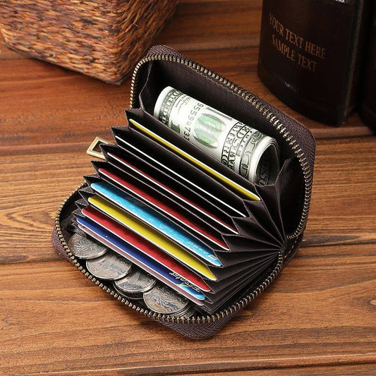 Accordion Zipper Card Holder Wallet Leather Card Case