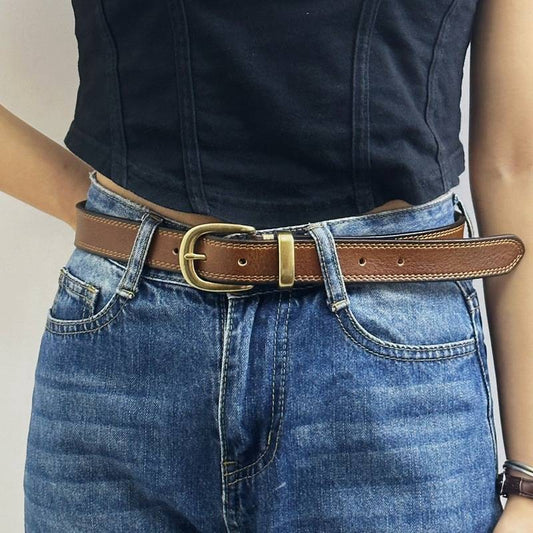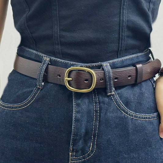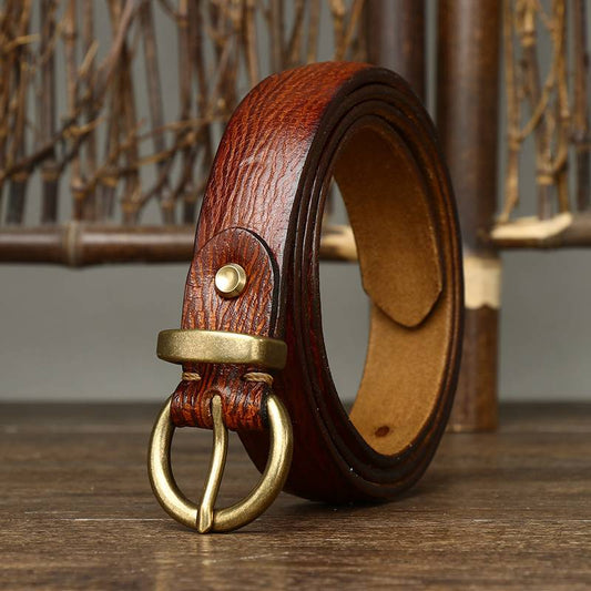 Simple Vintage Round Brass Buckle Women's Belt -0.94" Width