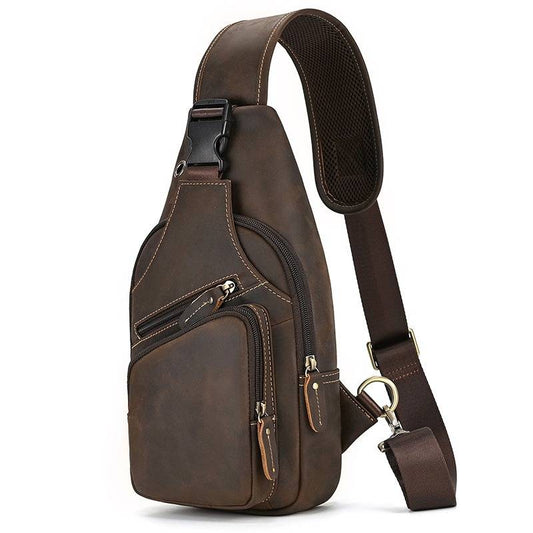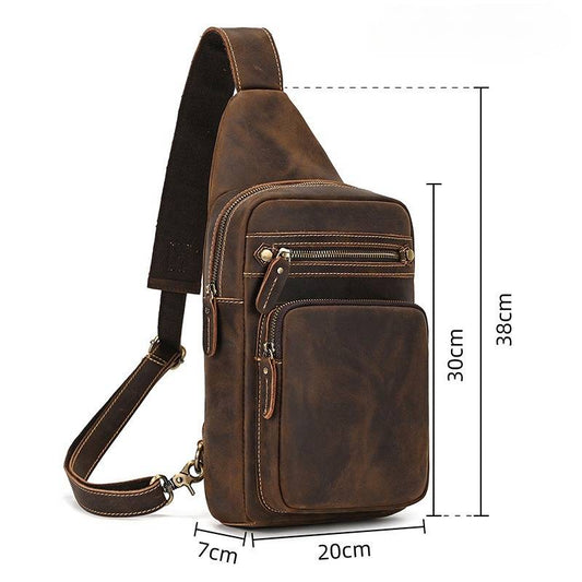Vintage Full Grain Leather Men's Sling Chest Bag